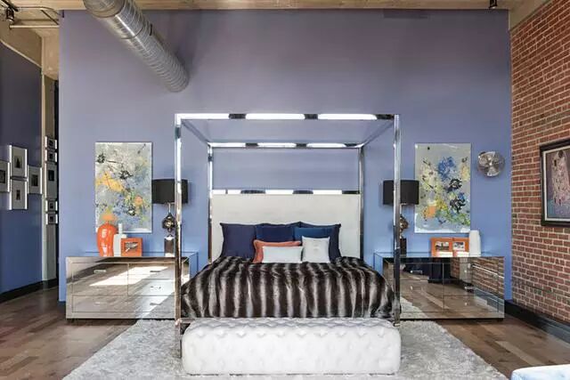 鏡面的床頭櫃將工業風的氣質發揮到極限,看似高傲冷峻的外表下流淌著令人難以抗拒的視覺震撼,時尚炫酷的感覺就這樣撲面而來。